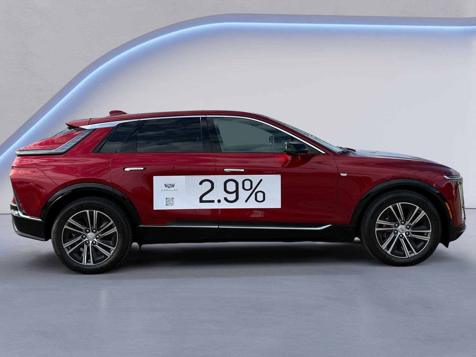EMISSIONS, FEDERAL REQUIREMENTS, PROPULSION, ELECTRIC, RWD, SINGLE MOTOR, ENGINE, NONE, DUAL LEVEL CHARGE CORD, 120V/1.4 KW AND 240V/7.7 KW CAPABILITY, TRANSMISSION, NONE, WHEELS, 20" SPLIT 6-SPOKE ALLOY, TIRES, 265/50R20 ALL-SEASON SELF-SEALING, RADIANT RED TINTCOAT, SEATS, FRONT BUCKET, SKY COOL GRAY WITH SANTORINI BLUE ACCENTS, INTELUXE SEATS WITH PERFORATED INSERTS, LPO, INTERIOR PROTECTION PACKAGE, LPO, ALL-WEATHER FLOOR MATS, FRONT AND REAR, CADILLAC DIGITAL KEY, LPO, INTEGRATED CARGO LINER
