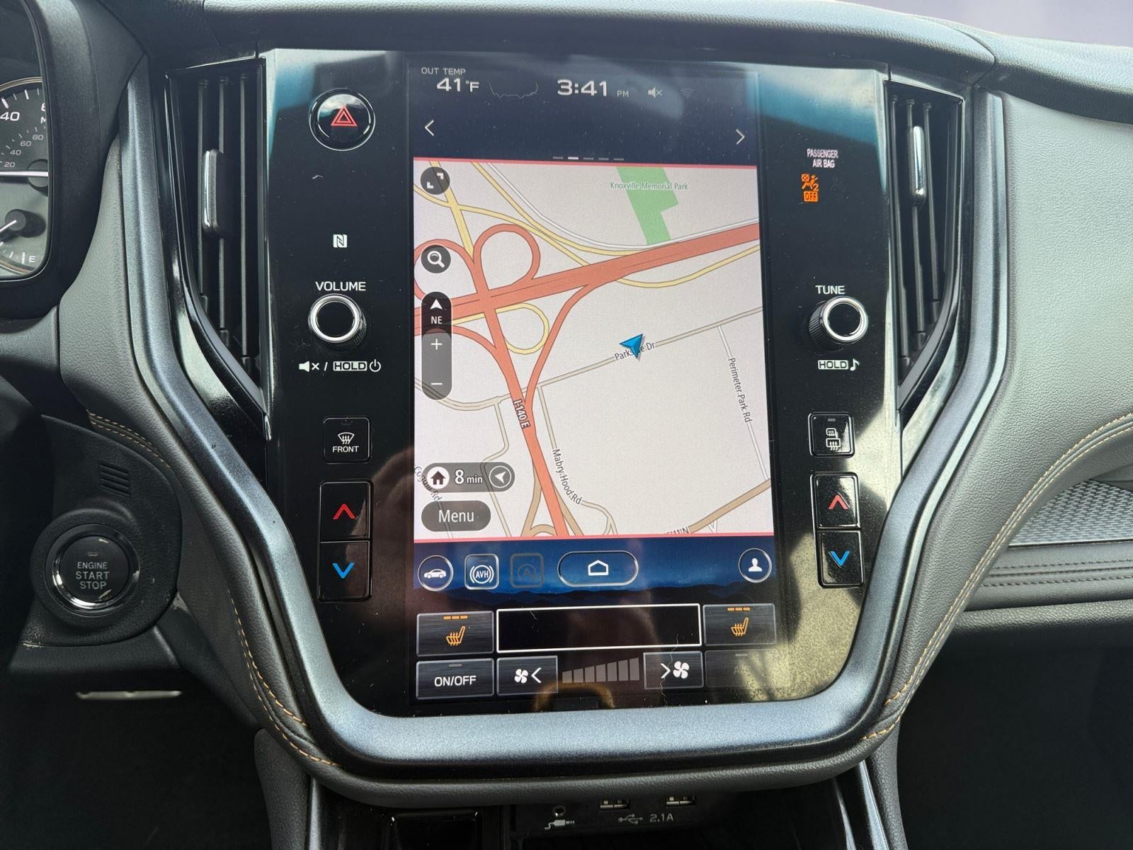 - Heated Front Bucket Seats -inc: height and tilt adjustable head restraints w/embossed Subaru Wilderness logo, whiplash reducing front seats, 10-way power driver's seat w/2-way power lumbar, 8-way power front passenger seat and seatback pocket