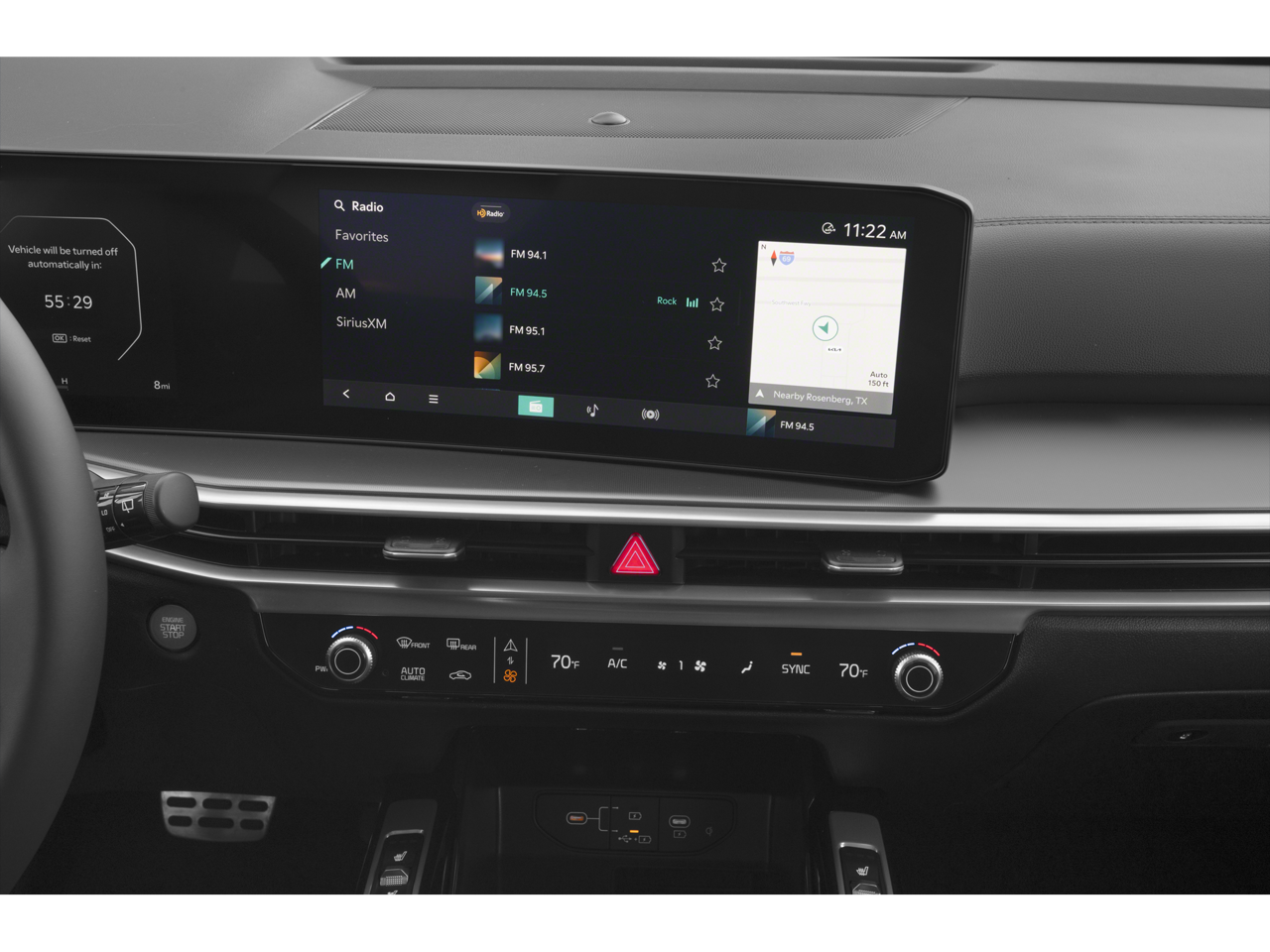 • Radio: AM/FM Audio System -inc: 12.3" curved display, navigation, HD Radio, Bluetooth® w/audio remote control, wireless Android Auto and Apple CarPlay, voice recognition, Sirius XM, Kia Connect, Wi-Fi hot spot, Over-The-Air Updates (OTA), 6 speakers and USB